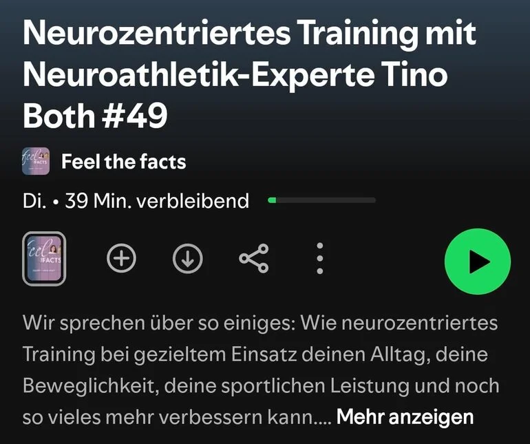 In der aktuellen Folge des Podcasts „Feel the Facts“ spreche ich mit Melanie und Ekin über das Thema neurozentriertes Training. Erfahre, wie du durch gezielte Übungen nicht nur deine sportliche Leistung, sondern auch deinen Alltag verbessern kannst. Jetzt reinhören!