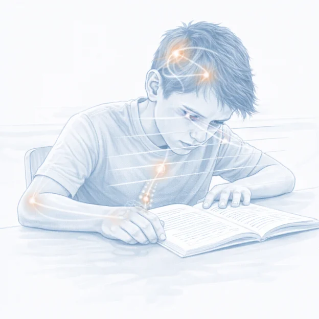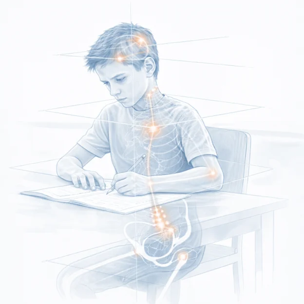 Wenn ein Kind bereits viel Energie dafür braucht, ruhig zu sitzen, den Blick zu stabilisieren, visuelle Informationen sauber zu verarbeiten oder die eigene Haltung aufrecht zu halten, bleibt oft weniger Kapazität für Fokus, Verstehen und Lernen.
